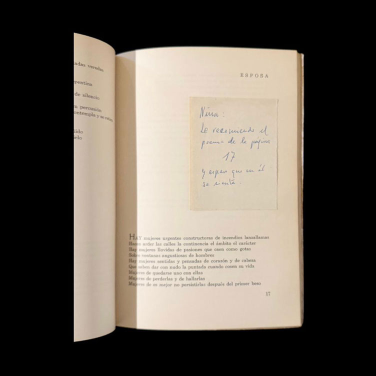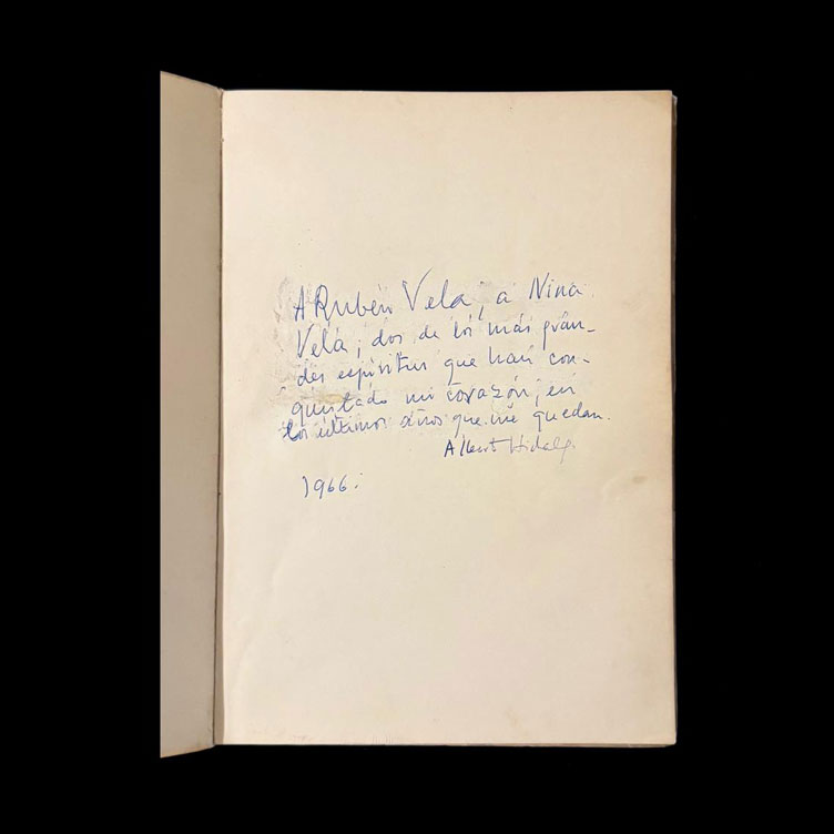 Ejemplar con un nota manuscrita de Alberto Hidalgo dirigida Nina Vela: