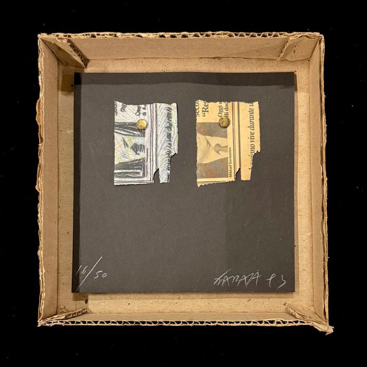 El primer número, BIOPSIA 1, reunió la obra VESTIGIOS de Horacio Zabala, realizada con recortes de periódico sobre papel negro, presentada en una caja de cartón, numerada y firmada por el artista.