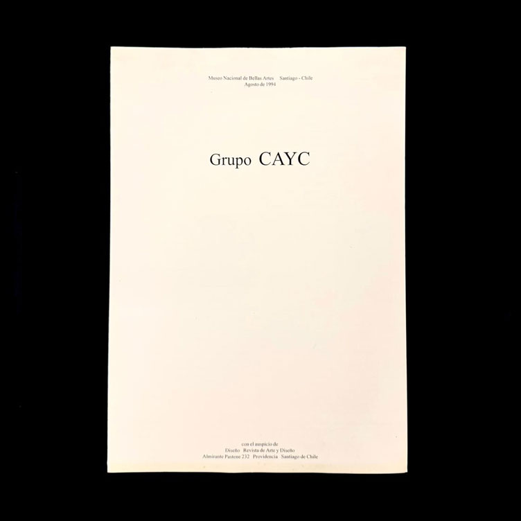Esta raro catálogo documenta la presentación del Grupo CAYC en el Museo Nacional de Bellas Artes de Santiago de Chile durante el año 1994.