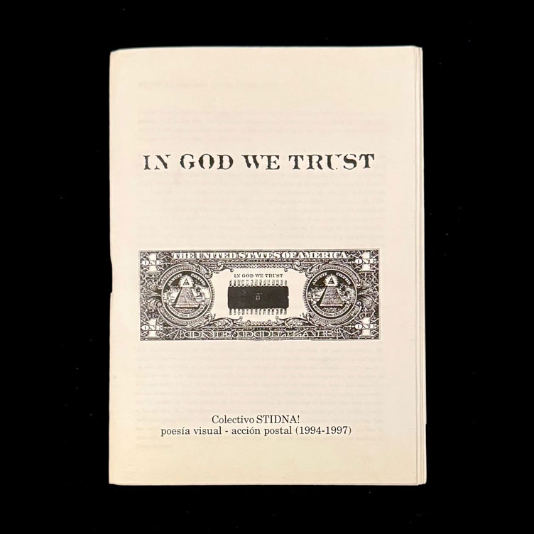 IN GOD WE TRUST es un fanzine de poesía visual y arte correo editado por el Colectivo STIDNA!